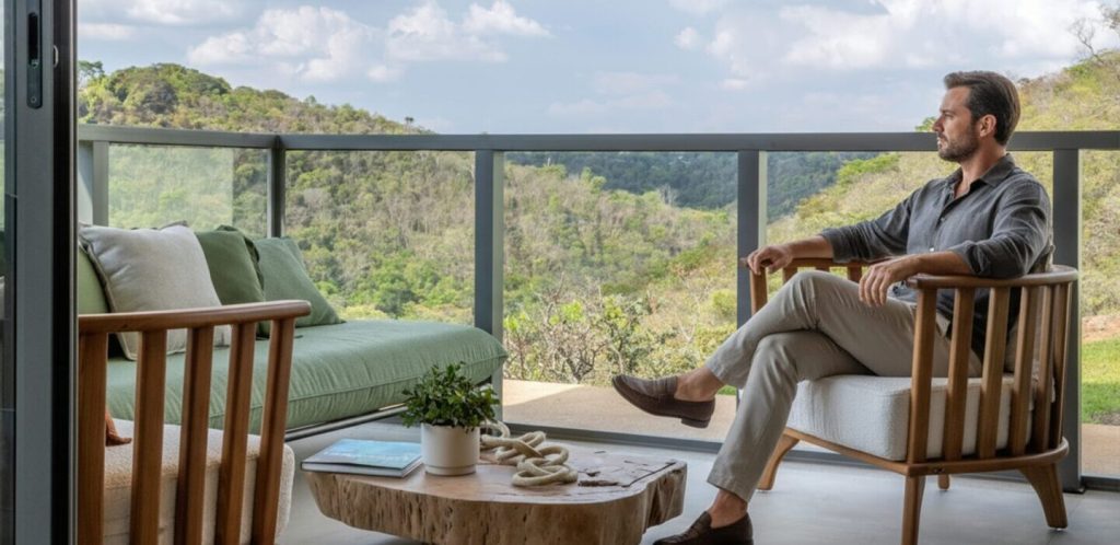 A expansão do seu horizonte pessoal. Os Apartamentos Prime (292 a 316 m²) redefinem a conexão com o exterior. O amplo terraço integrado é um convite ao relaxamento e ao entretenimento, criando uma transição perfeita entre o aconchego interno e a paisagem da reserva. A escolha para quem valoriza amplitude e o diálogo constante com a natureza.