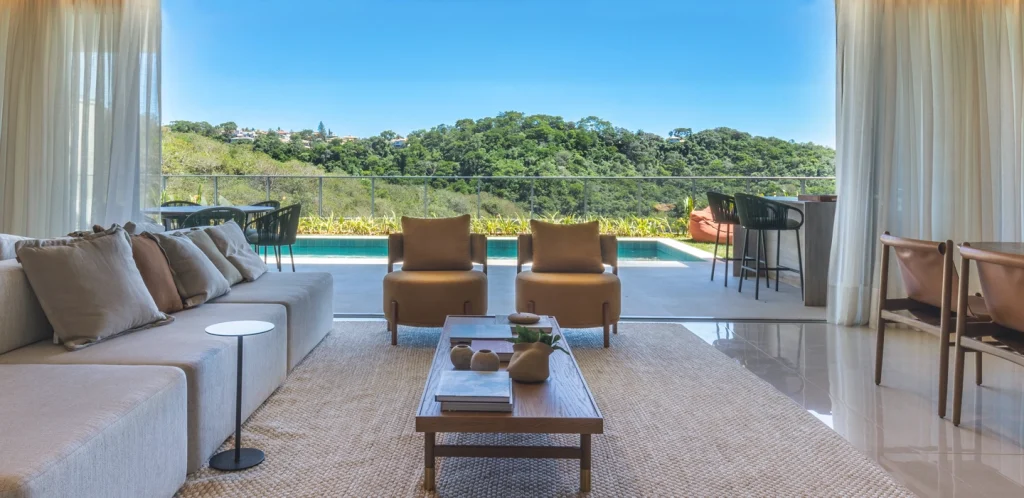 A autonomia de uma casa com a exclusividade de um clube. As Townhouses (417 a 586 m²) representam o ápice do espaço privativo. Com jardim, piscina e múltiplos ambientes distribuídos em andares, oferecem a liberdade e o aconchego de uma residência única. A tipologia definitiva para famílias que buscam criar memórias e estabelecer um legado.